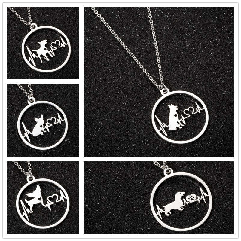 Oly2u Stainless Steel Bull Terrier Bulldog Chihuahua Dachshunds Necklaces Pendants Lovely ECG Heartbeat Dog Necklaces for Women