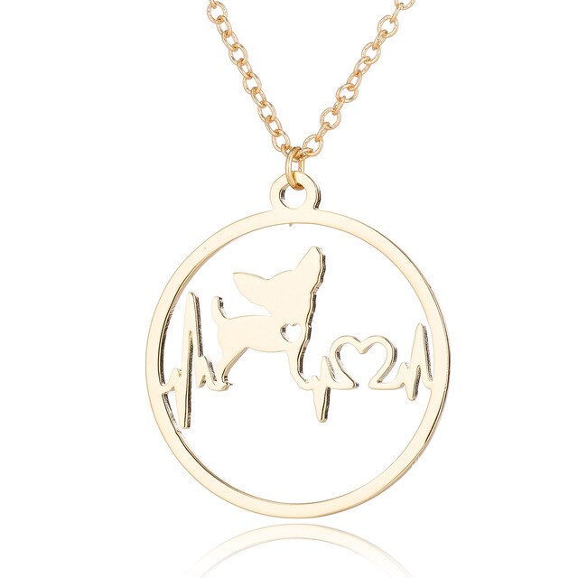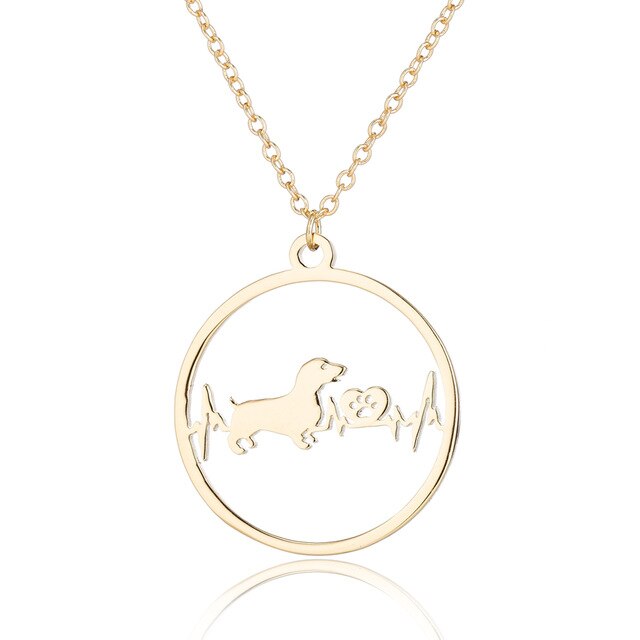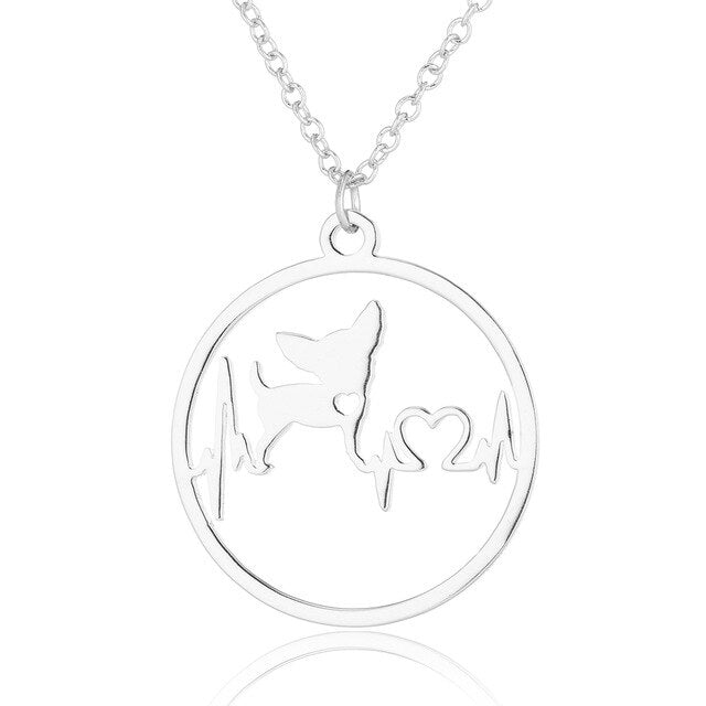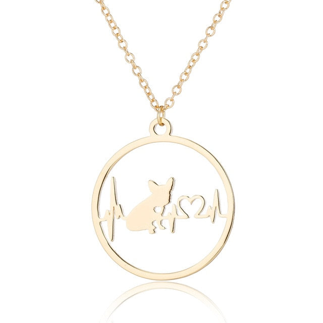 • Load image into Gallery viewer, Oly2u Stainless Steel Bull Terrier Bulldog Chihuahua Dachshunds Necklaces Pendants Lovely ECG Heartbeat Dog Necklaces for Women